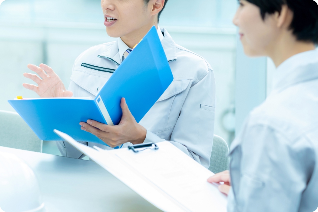 各事業所の労働者代表が現場の声を集約し、労使で話し合いを行う制度です。懇談会参加時は業務が免除され、労働時間として扱われるため、安心して参加できます。社員の声を尊重し、風通しの良い職場や透明性のある制度づくりを大切にしています。話し合いの内容については会社から年度内に回答があり、今後の方向性が示されます。