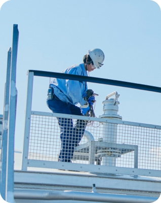 石油製品は、私たちの生活や工場などで幅広く使われています。油槽所は、製油所から運ばれてきた石油製品を一時的に保管し、お客様に安全に届けるための大切な場所です。決められた品質を保ち、不純物が混ざらないようにしっかりと管理し、安全で安定した石油製品を供給するため、日々点検と品質確保に努めています。