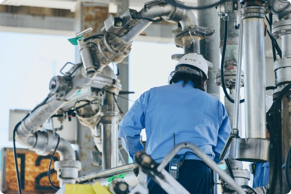 構内全域を巡回し、漏洩や設備の不具合がないかを確認します。