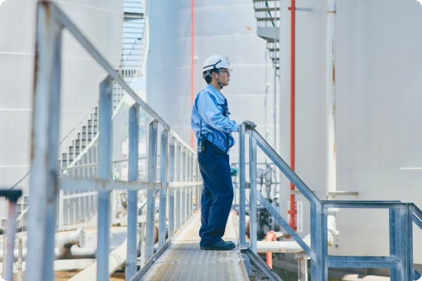油槽所は、ガソリンや軽油などの石油製品を安全に保管し、全国へ供給する重要な拠点です。出荷する製品はタンクローリーや船で、ガソリンスタンドや工場、空港、建設現場などに届けられており、1台の大型タンクローリーは最大3万リットルもの石油を輸送できます。出光ターミナルネットワークでは年間約38億リットルを出荷しており、これは25mプール約12,700杯分に相当します。出荷作業にあたり、設備点検や品質確認の徹底も私たちの重要な仕事です。